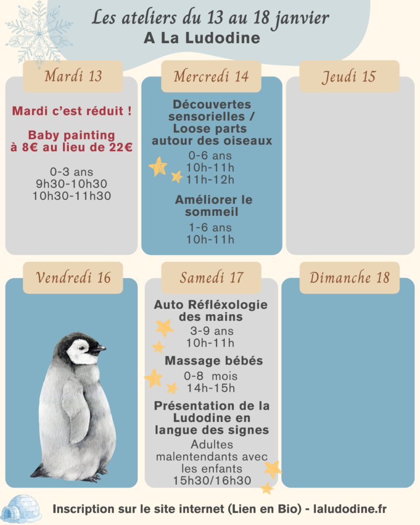 Des intervenants-tes professionnels-lles sont amenés-ées à venir à la Ludodine pour ces ateliers qui sont sur inscription.